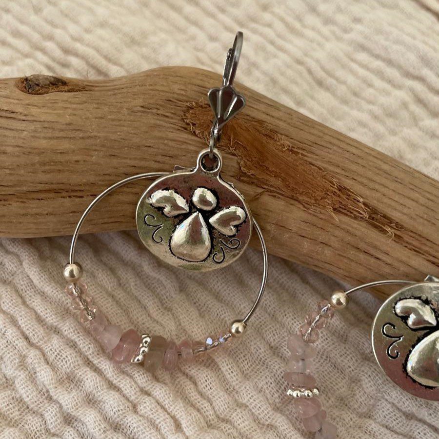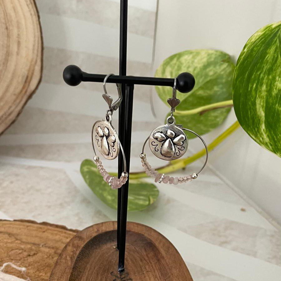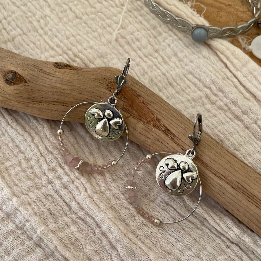 Boucles d’oreilles argentées ange et perles roses
