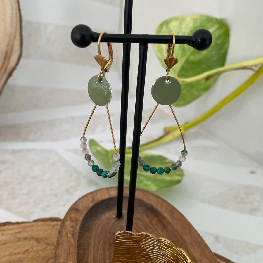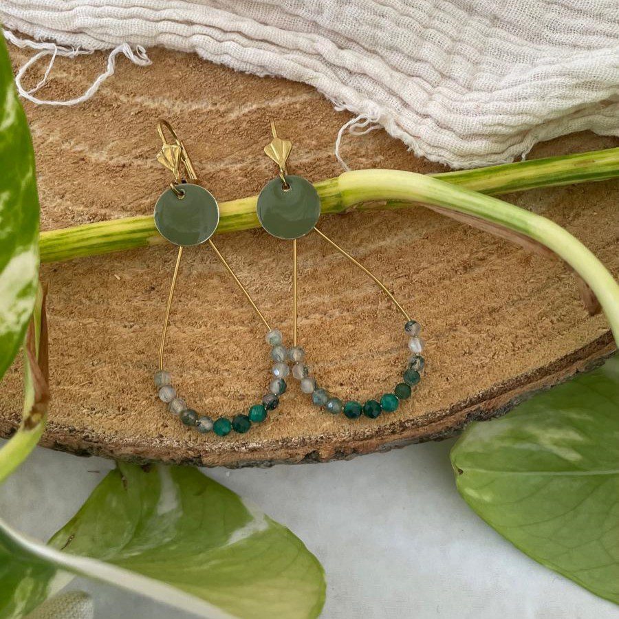 Boucles dorées goutte verte