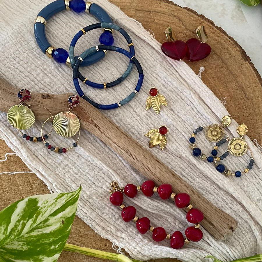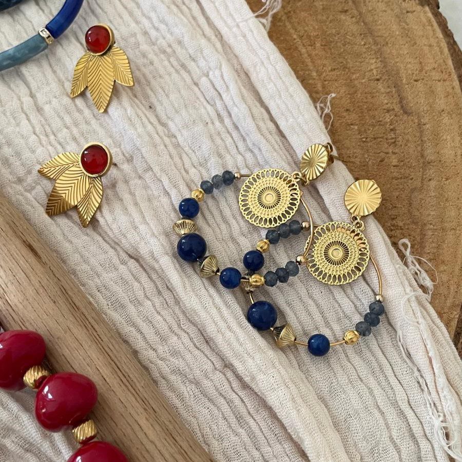 Boucles d’oreilles clou dorées et bleues