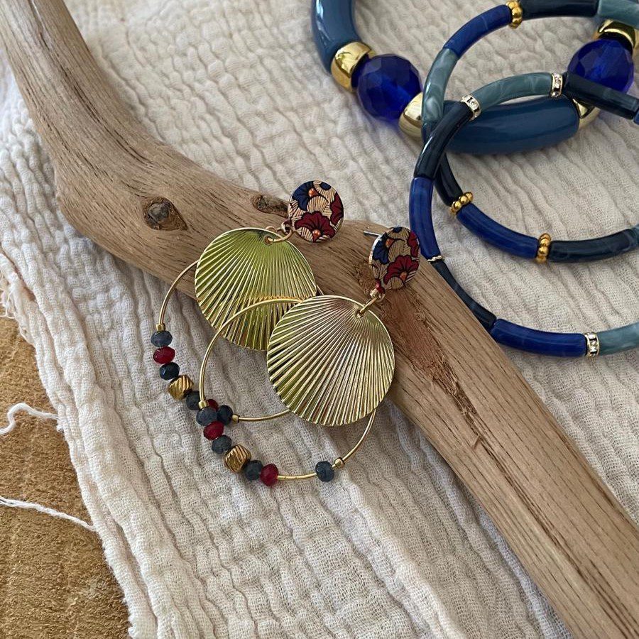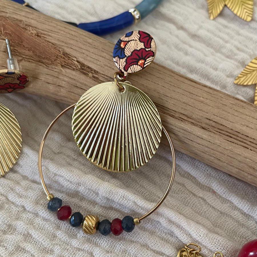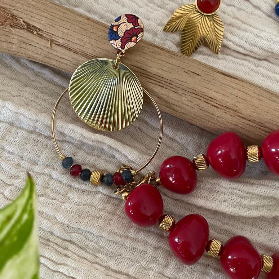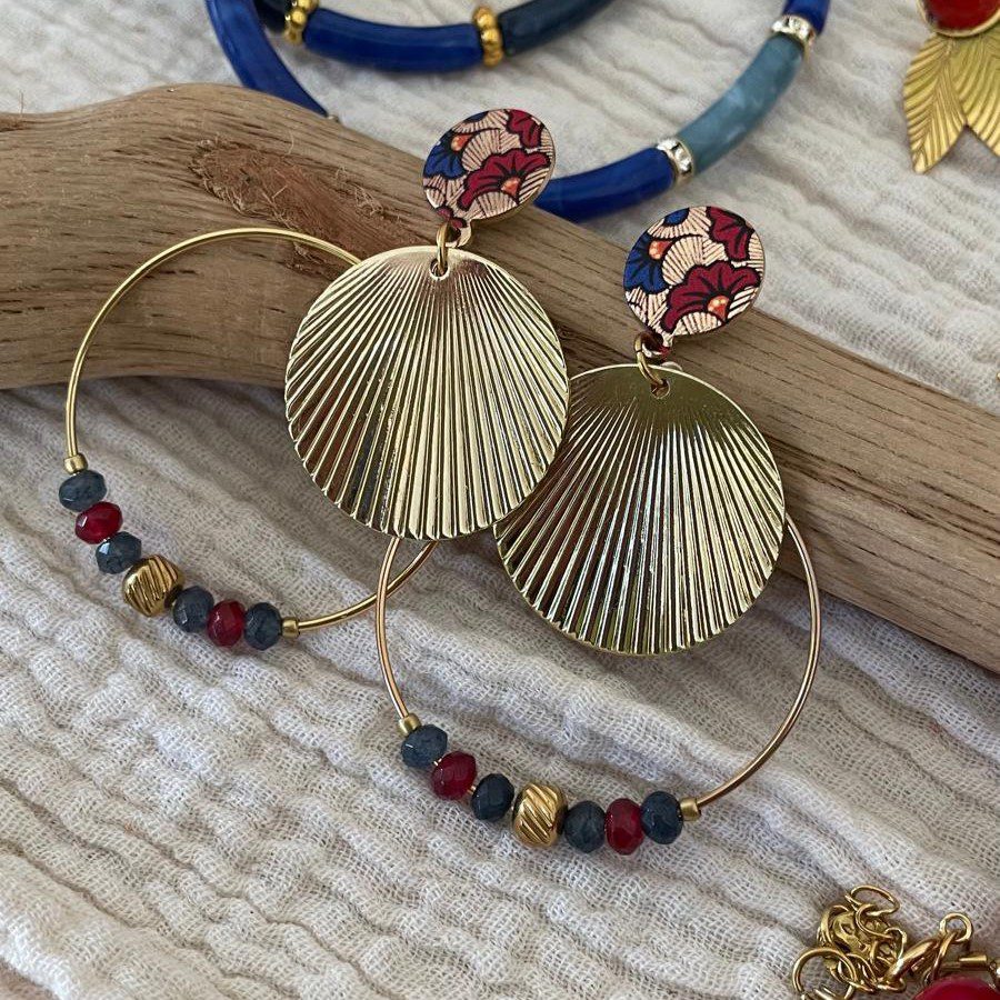 Boucles d’oreilles clou wax et créoles rouges et bleues