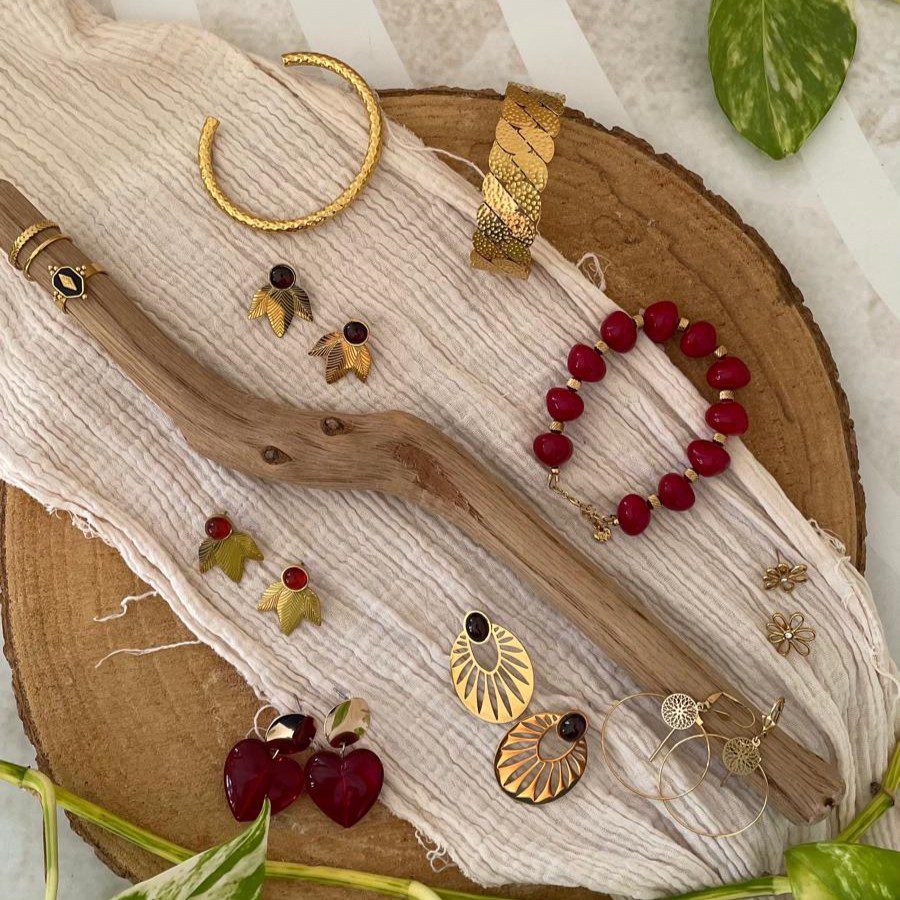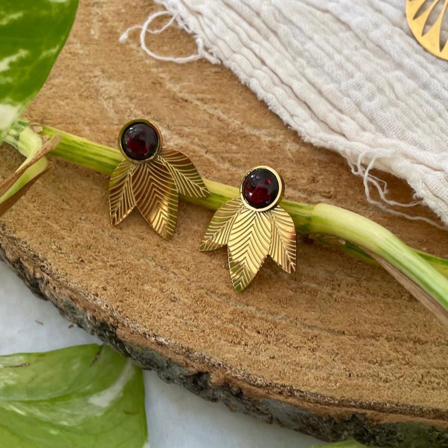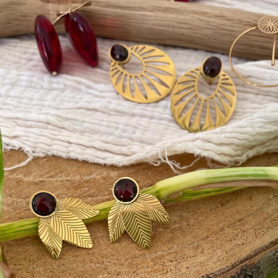Boucles d’oreilles feuilles pierre grenat