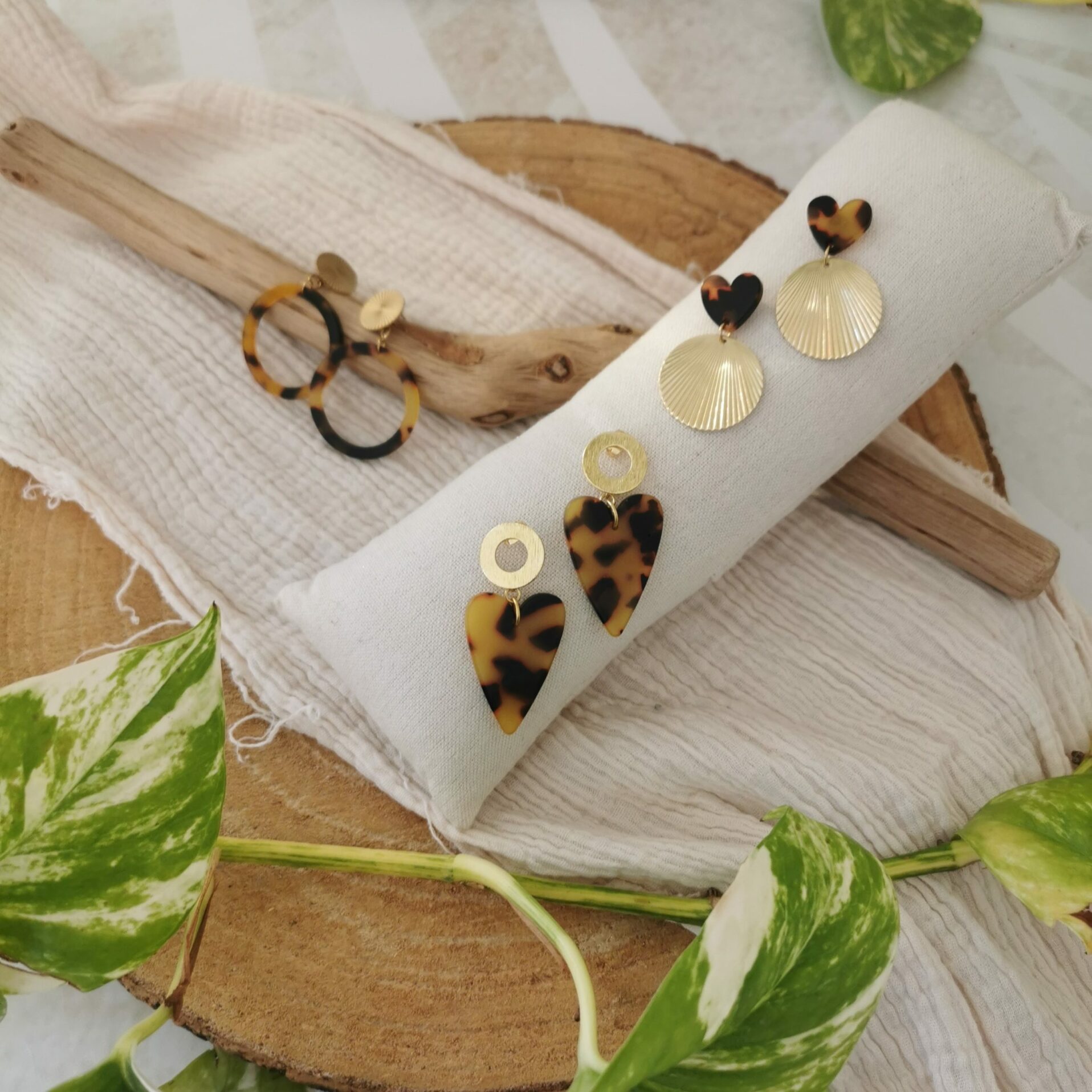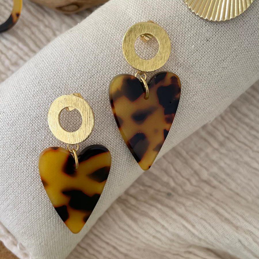 Boucles d’oreilles rond doré et cœur léopard