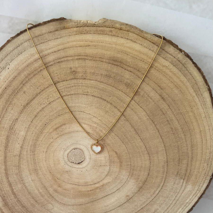 Titre SEO : Chaîne Dorée Pendentif Blanc et Doré – Bijou Femme Élégant & Tendance 2025 – Style Minimaliste et Chic