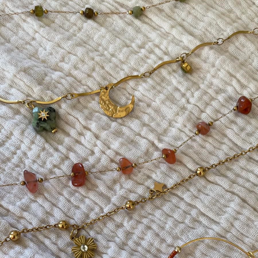 • Longueur : 40,5 cm pour la chaîne perlée verte, 45,5 cm pour la chaîne avec breloques