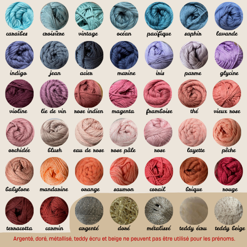 • Je sélectionne le fil de coton selon sa qualité pour réaliser les prénoms, arc-en-ciel et animaux.
