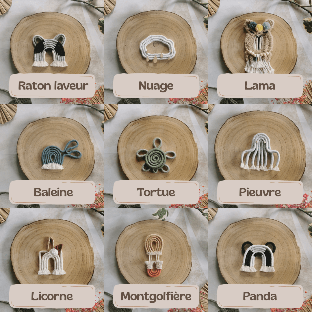 Notre bois flotté avec animaux en macramé est une pièce artisanale unique, parfaite pour ajouter une touche naturelle et bohème à la décoration de la chambre de bébé. Chaque pièce est soigneusement fabriquée à la main, ce qui en fait un cadeau vraiment spécial et personnalisé.